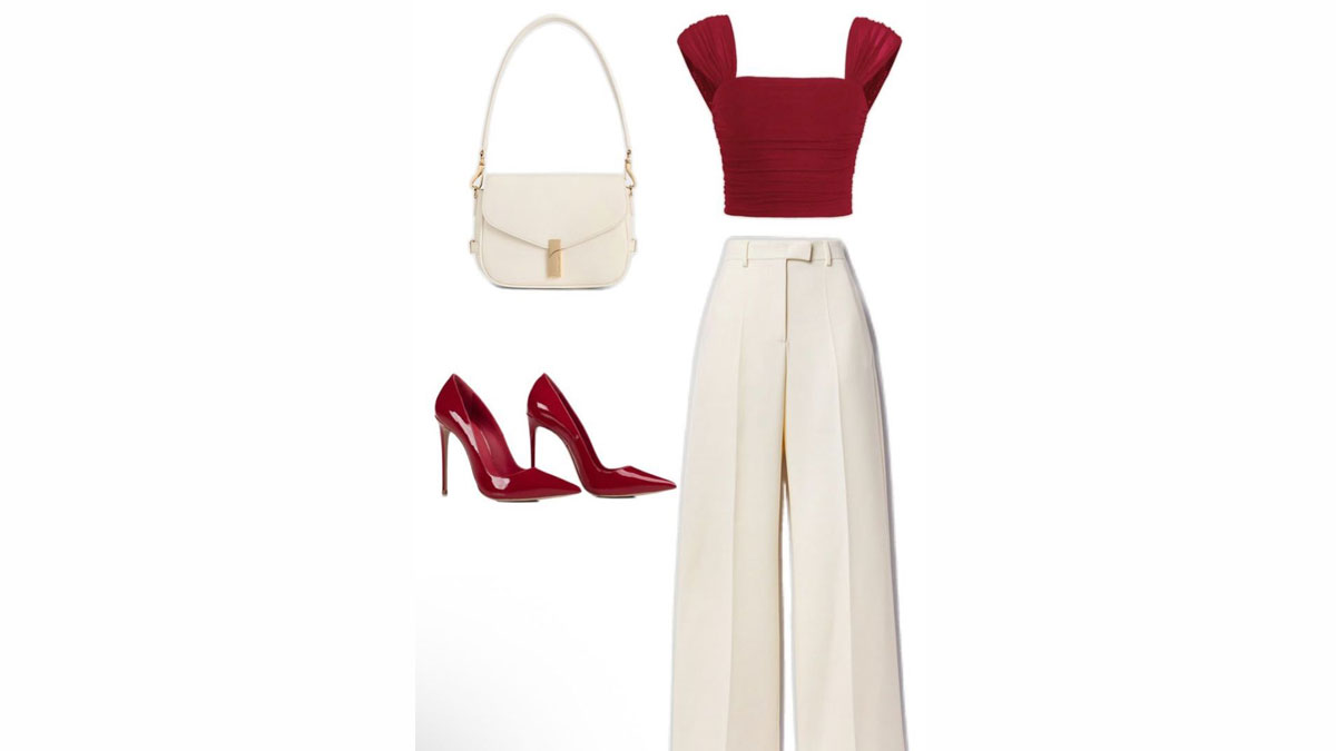 یک تاپ ابریشمی یا ساتن را با شلوار مخمل گشاد یا دامن مجلسی بپوشید و استایل خود را با یک جفت کفش پاشنه بلند شیک، کیف کلاچ کوچک و جواهرات ظریف کامل کنید.