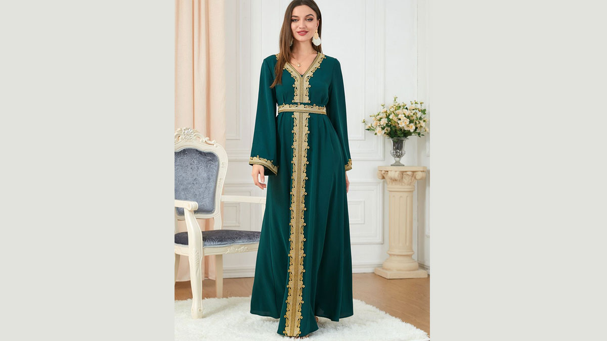 کفتان یا مانتو زنانه مراکشی یک لباس بلند مجلسی است که میتوانید آن را به تنهایی یا با شلوار زنانه بپوشید. در فصل تابستان از کفتانهای ابریشمی یا ساتن سبک با رنگهای روشن استفاده کنید و برای زمستان، مدلهای مخمل گرم با رنگهای تیره مثل شرابی یا سرمهای را در اولویت قرار دهید. این لباس با گلدوزیهای طلایی و نقرهای، انتخاب اصلی برای عروسیها و مهمانیهای رسمی است و با بستن یک کمربند زری با قطعات فلزی دور کمر و به پا کردن صندلهای مرواریددوز تکمیل میشود. البته زیورآلات را از قلم نیندازید و بهدنبال زیورآلات سنگین مثل گوشوارههای حلقهای بزرگ و دستبندهای لایهای باشید.