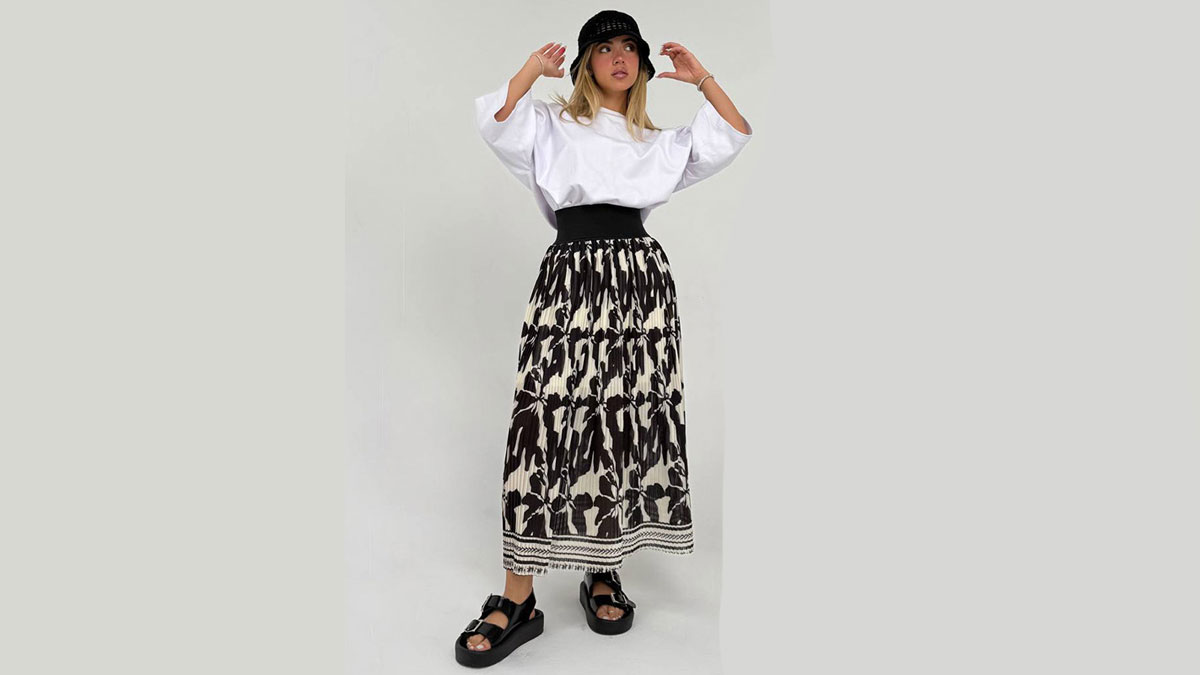 برای این نوع دامن که خطوطی ظریف و شیک ایجاد میکند، بهترین انتخاب یک شومیز زنانه یقهدار ساده یا مدلهایی با جزئیات کم مانند دکمههای تزئینی یا طرحهای تاپدوزیشده است. این ترکیب، ظاهری کلاسیک و زیبا به شما میدهد و برای محیطهای اداری و مهمانیهای رسمی ایدهآل است.