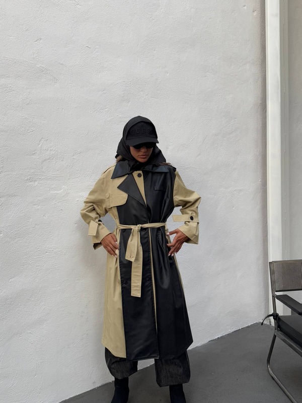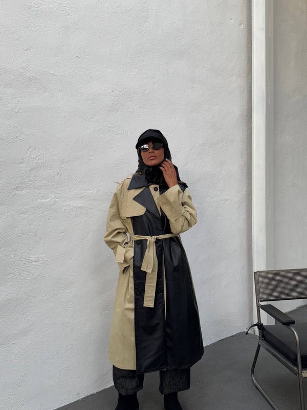 بارانی مدرن تاکینگ تلفیقی از پارچه چرم مرغوب و کتان زارا کج راه