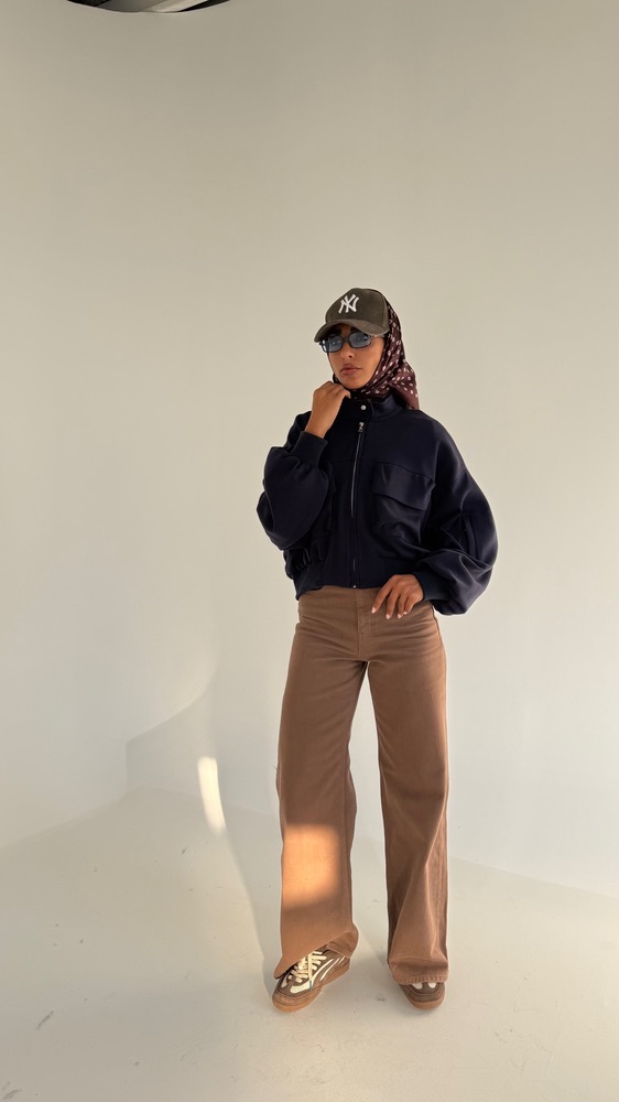 جکت اویشو (Oisho): این نوع پارچه معمولا حالتی نرم، لطیف و در عین حال ایستایی خوبی دارد. انتخاب اویشو باعث شده جکت سبک باشد، اما همچنان ساختار خوبی داشته باشد، یعنی هم برای پوشیدن روزانه و هم برای استایلهای پاییزی کاربردی است.