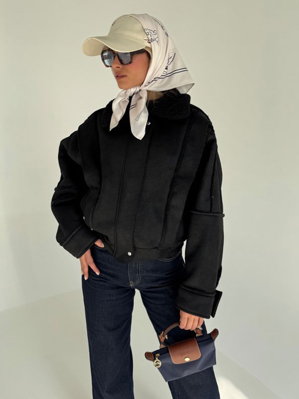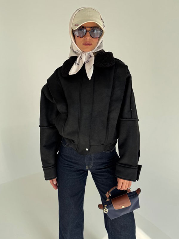 برای تکمیل این استایل شهری، پیشنهاد میکنم این جکت را با یک شلوار اسکینی یا جذب به رنگ مشکی یا خاکستری تیره ست کنید. استفاده از بوت بلند یا نیمبوت چرمی در کنار یک کیف دستی کوچک میتواند ظاهر شما را بهراحتی از روزمره به یک استایل خیابانی شیک و چشمگیر تبدیل کند.