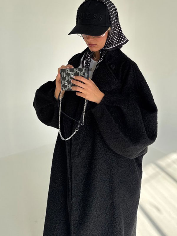 چون پالتو فری سایز است و برش خیلی فیت نیست، دیما اجازه میدهد آزادانه زیرش لباس بپوشی؛ از سوییشرت و هودی گرفته تا پلیور ضخیم، بدون اینکه ظاهرش بهم بخورد